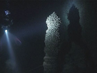 Following on towards the surface the seabed becomes calcareous though still covered by a thin layer of mud. A few meters further on you can touch the smooth, clean, steep calcareous wall that leads to the surface. At this point it is possible to lean on the wall with your head above the water.